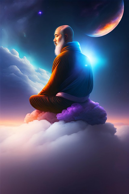 monk meditating in space
