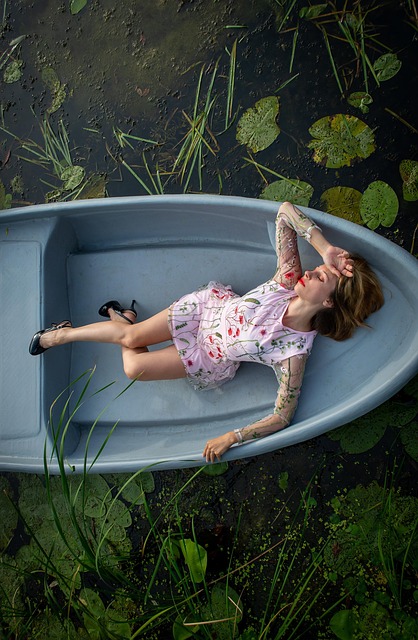 the girl lies in the boat