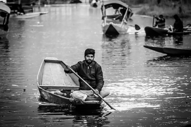 kashmiri man riding boat