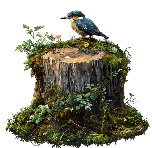 tree stump with greenery